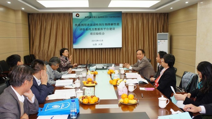 受科技部委托,2013年10月29日,中国轻工集团公司组织行业专家,在山西太原召开了表面活性剂和洗涤剂行业生产力促进中心承担的国家火炬计划项目“洗涤剂用表面活性剂生物降解性能评价系统及数据库平台建设”(项目编号:2011GH552095)项目验收会。评审专家有来自表面活性剂原料生产企业代表,下游应用企业代表,科研院所机构代表,装备与设计公司代表以及中轻集团有关项目负责人和财务审计工作人员。