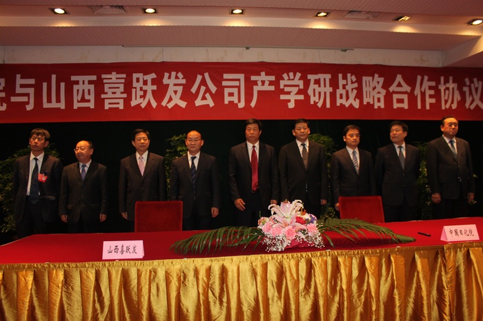 王万绪院长在签约仪式上向市委、市政府表示了感谢,感谢陈书记百忙之中多次过问和关心,感谢市科技局富有成效的协调和组织。他表示将集中各种科技资源、人 才资源与喜跃发公司精诚合作,齐心协力,共同推进,早出成果,早见效益,为山西,为太原的经济转型、科技进步、科技成果产业化、商业化做出贡献,做出成 效。