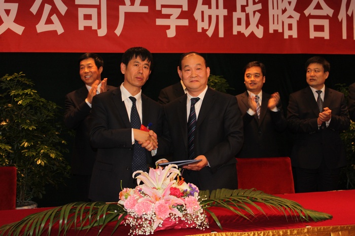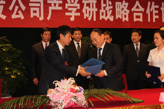 5月11日,距离省委常委、市委书记陈川平来中国日化院调研整整一个月的时间,中国日化院和山西喜跃发路桥建筑材料有限公司签订了产学研战略合作框架协 议。这是太原市科技局积极落实陈书记关于“积极推动产学研结合,加快科技成果产业化进程,政府部门要搭建平台,提供优质服务和良好发展环境”的指示,牵线 搭桥,经过三轮对接、沟通和洽谈,结合中国日化院的人才、技术优势以及山西喜跃发公司的转型跨越发展需求,双方达成合作意向,重点进行技术开发、成果转 化、人才培养方面的合作,共建硕士和博士研究生工作实习基地,共建“路用材料企业工程实验室”等,并确定了今年的第一个合作项目——总投资1.6亿元的 “纳米改性煤沥青在道路中的应用技术开发及产业化示范”。