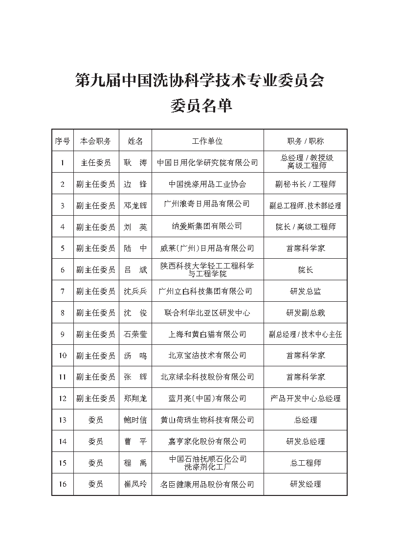 中国洗协用品工业协会科学技术专业委员会(以下简称科技委)是中国洗涤用品工业协会(以下简称中国洗协)下属的分支机构,由从事日用化学工业制造、销售、科研和标准制定等相关企业、机构组成。