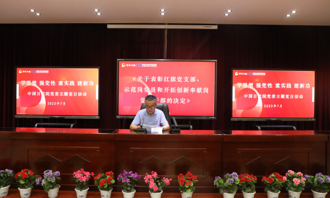 党委委员、副院长程宁宣读了《关于表彰红旗党支部、示范岗党员和开拓创新奉献岗党员干部的决定》。