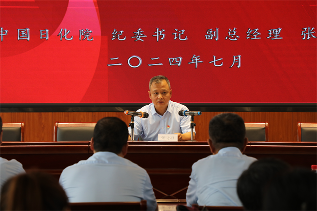 接着,党委委员、纪委书记、副总经理张小旦讲授了题为《以党纪学习教育为契机 坚持自我革命 营造正风肃纪反腐良好生态 助推日化院高质量发展》的廉洁党课。他指出,党风廉政建设和反腐败的核心内容是正风肃纪反腐,并结合习近平总书记指出的在深入推进党的自我革命实践中需要把握好的九个问题及日化院实际,从进一步健全反腐败法规制度、坚定不移推进党的自我革命、在铲除腐败问题产生的土壤和条件上持续发力、纵深推进、持续保持惩治腐败高压态势、深化改革阻断腐败滋生蔓延、持之以恒净化政治生态、加强新时代廉洁文化建设、绝对忠诚、绝对可靠、绝对纯洁等方面进行了阐述。他号召全体党员和统战对象要坚持党纪学习的拓展性和系统性,学深学透,坚持自我革命,营造正风肃纪反腐生态,形成发展合力,为日化院高质量发展营造良好政治生态。