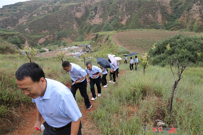 上午10时许,全体人员到达目的地,在红军东征纪念馆浮雕前,由党委书记、总经理耿涛领誓,重温入党誓词,感怀入党初心。虽然天空下着淅淅沥沥的小雨,但大家依然肃穆敬仰,深切缅怀着英雄先烈。随后,全体人员徒步穿越了崎岖的山路,在“重走东征路”的体验中,感受了当年革命先辈们的艰辛与不易。