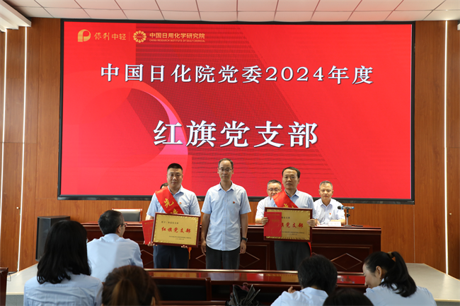 会议首先进行了2024年中国日化院“两优一先”表彰活动,党委委员、副总经理程宁宣读了《关于表彰红旗党支部、示范岗党员和开拓创新奉献岗党员干部的决定》。