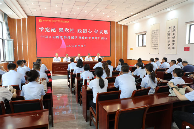 表彰活动结束后,党委书记、总经理耿涛讲授题为《深入学习贯彻<条例>精神 强化纪律意识 加快推动中国日化院科技创新和高质量发展》的专题党课。党课生动严谨,内容充实。耿书记分别从深刻认识开展党纪学习教育的重要意义;深入学习贯彻《条例》,把牢正确政治方向,不断推动科技创新工作高质量发展;坚持人才是第一资源,最大限度激发人才创新创造活力;强化使命担当,持续推动日化院高质量发展等方面进行讲述。他结合国家重大战略需求、科技成果转化、人才体系建设、党建与业务深度融合四个方面存在的短板,指出要从强化党建引领,推动改革创新以强化战略引领,打造战略性新兴产业和未来产业,提升自主知识产权管理水平,实施人才强企战略等方面推动落实。最后,他强调,全体党员干部要深刻认识到党纪学习教育的重大意义,全面提高政治站位,做到心往一处想、劲往一处使,形成推动科技创新和发展改革的强大合力,不断推动日化院高质量发展。