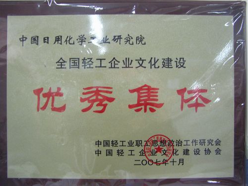 中国日化院被授予全国轻工企业文化建设优秀集体