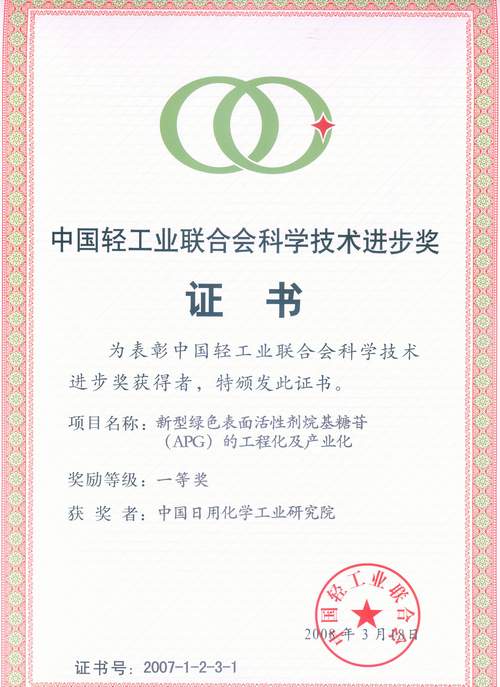 中国日化院科技成果获中国轻工业联合会科学技术进步奖