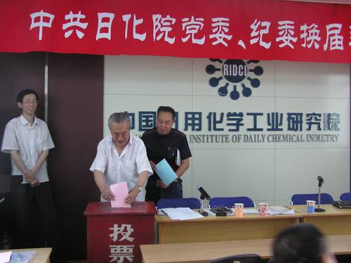 工作报告之后,按照大会程序,开始了换届选举仪式。经过参加大会的全体党员认真严肃地填写选票,监票人、计票人认真核对,统计选票,选举产生了王万绪等七名同志组成的中共中国日化院第二届委员会;选举产生了郭建国等五名同志组成的新一届纪律检查委员会。