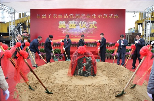 随后,各位领导、嘉宾共同为项目奠基培土,现场气球高悬,鞭炮齐鸣,掌声不断,在场人员共同见证了这一盛况,奠基仪式圆满结束,自此非离子表面活性剂产业化示范基地建设项目扬帆起航。