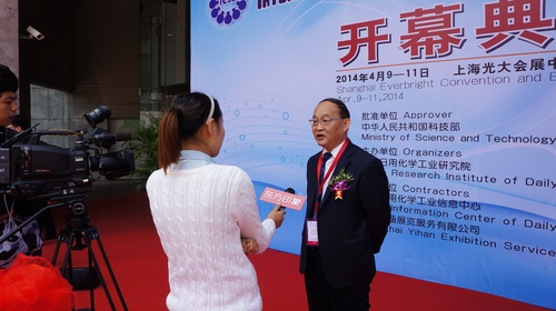 大会组委会主席、伟德安卓app下载安装最新版王万绪院长在展览会开幕式现场就我国表面活性剂行业发展情况接受电视媒体采访