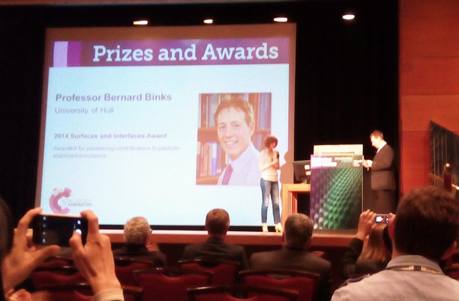 大会由大会报告、邀请报告、口头报告、墙报展示四部分组成,邀请了美国加州大学圣塔芭芭拉分校的Jacob Israelachvili(1976年提出临界排列参数概念)、英国赫尔大学的Bernie Binks、德国马普所的Katharina Landfester等国际知名科学家做了大会报告,分会的邀请报告和口头报告也非常精彩。会议期间,各国学者重点探讨了功能性表面活性剂的组装及调控、纳米新胶体体系、纳米微胶囊及其在医药领域中的应用、颗粒稳定的乳液、胶体材料以及胶体体系在工业中的应用等。