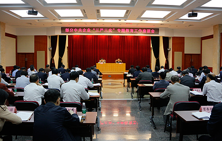 4月27日,国资委党委召开部分中央企业“三严三实”专题教育工作座谈会,贯彻落实中央“三严三实”专题教育工作座谈会精神,部署60家中央企业专题教育工作。黄丹华同志出席会议并讲话,刘强同志传达了中央“三严三实”专题教育工作座谈会精神和刘云山、赵乐际同志在座谈会上的重要讲话。会议由刘强同志主持。