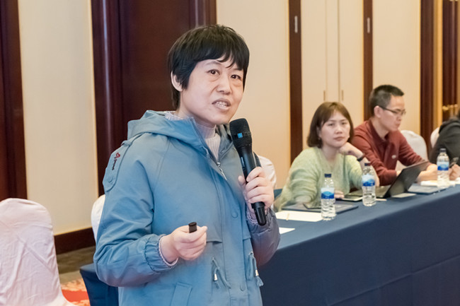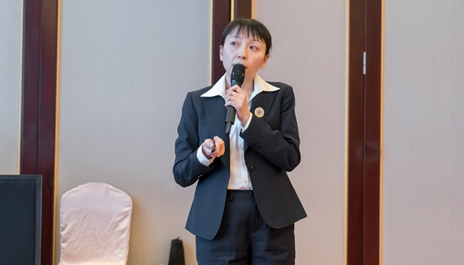 常务理事单位代表名臣健康用品股份有限公司崔凤玲经理发言