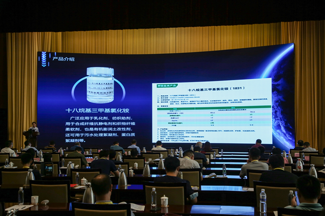 论坛的正式会议由北京绿伞化学股份有限公司研发副总李泉清和天津浩元精细化工股份有限公司总经理杨永年主持,会议共邀请到行业内的10名专家学者作主题报告和特邀报告,分别是伟德安卓app下载安装最新版高级顾问李秋小的《中国阳离子表面活性剂工业回顾与展望》,北京工商大学轻工科学技术学院院长徐宝财的《阳离子表面活性剂的研究进展》,威莱(广州)日用品有限公司产品经理张天翼的《阳离子表面活性剂在洗涤和消杀领域的应用》,中国石化石油工程设计有限公司专家李金环的《阳离子表面活性剂在油田采出液处理中的应用》,全国卫生产业企业管理协会消毒产业分会会长暨中国卫生监督协会消毒技术与应用专委会主任委员顾健的《阳离子表面活性剂相关消毒产品卫生安全评价及备案新要求》,北京绿伞化学股份有限公司研发主管随东辉的《季铵盐类阳离子表面活性剂在消毒剂上的应用现状》,赢创特种化学(上海)有限公司亚太区清洁技术服务经理郑棱锋《阳离子织物柔软剂的发展和应用》,成都科宏达化学有限责任公司技术总监车国勇的《高纯度苯扎氯铵粉末对比及对戊二醛消毒剂的增效探索》,伟德安卓app下载安装最新版胺化研究室主任姜亚洁的《新型阳离子表面活性剂的研究与应用》。大会报告从阳离子表面活性剂的发展进程,基础研究到各行业应用,进行了全方位,深层次的阐述与探讨。会议中场融入了中国阳离子表面活性剂重点生产企业及产品推介,共计10余家企业进行了介绍与推广,得到了企业的一致好评。