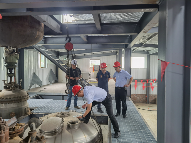2021年7月22日,中国日化院党委书记、院长耿涛对中国日化院在建表面活性剂国家工程中心交城孵化基地进行了实地调研指导,日化院副院长杨效益、山西文锦汇公司白友忠总经理及西安油脂机械设备公司项目负责人陈礼刚一同调研。