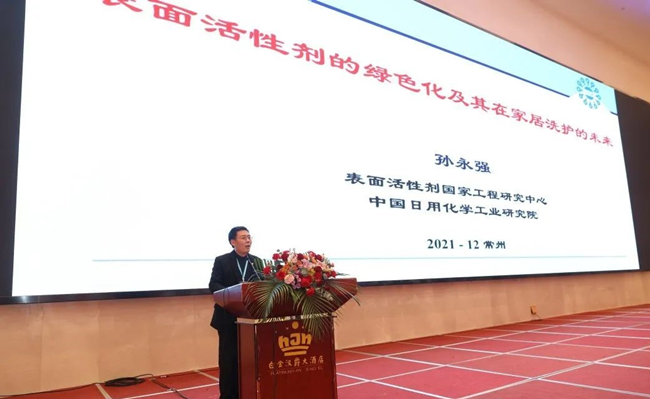 中国日化院孙永强副院长向2021新业态下家居护理创新发展论坛作报告