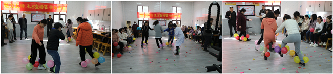 女职工每人脚绑三颗气球,两人一组开展“踩鸡蛋”比赛,看似简单的游戏,攻守之间,动静抉择,既是智慧的角逐,也是团队合作的展示。大家心情放松, 活动现场热闹活泼,在温馨欢乐的气氛里,尽情享受节日的快乐。