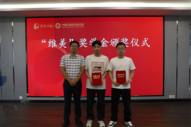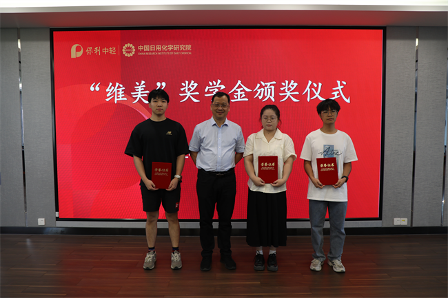 2024年8月13日,中国日化院举行了“维美”奖学金颁奖仪式。会议由中国日化院党委委员、纪委书记、副院长张小旦主持。苏州维美生物科技有限公司总监周志明先生、总经理助理陈涛先生、中国日化院党委班子成员、部分研究生导师和研究生参加了颁奖仪式。