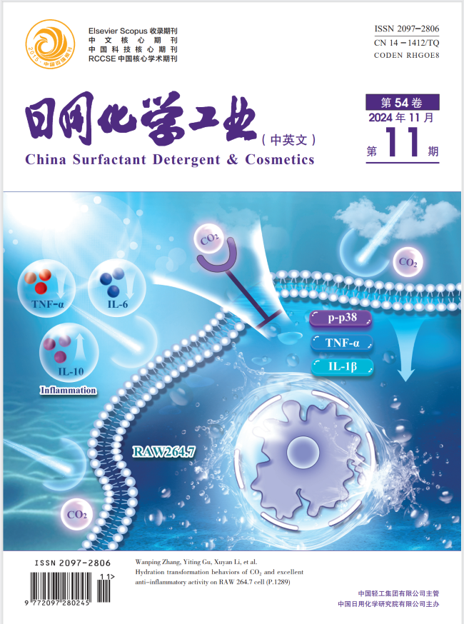 《日用化学工业(中英文)》(CN:14-1412/TQ,ISSN:2097-2806,月刊))是由中国轻工集团有限公司主管,伟德买球app站主办,创刊于1971年,是迄今为止我国日用化工领域唯一的中文核心期刊、中国科技核心期刊及RCCSE中国核心学术期刊。