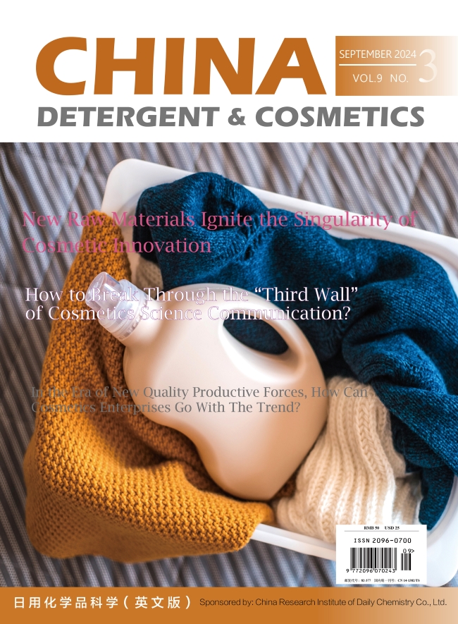 China Detergent &Cosmetics于2015年创刊并于2016年正式发行,是中国唯一的专业报道中国日化行业状况的英文期刊,其主管单位为中国轻工集团有限公司,主办单位为伟德买球app站。作为中国日化领域的第一本全英文期刊,CDC面向海内外公开发行,全面解析全球日化行情,重点展示中国日用化学工业领域科研成果,同时介绍全球日化行业的先进技术、成果及市场发展情况。CDC填补了中国日用化学工业领域无英文版专业期刊的空白,承载了中国日化行业对外宣传,让世界了解中国日化的重任,是中外日化行业进行交流展示的绝佳平台。