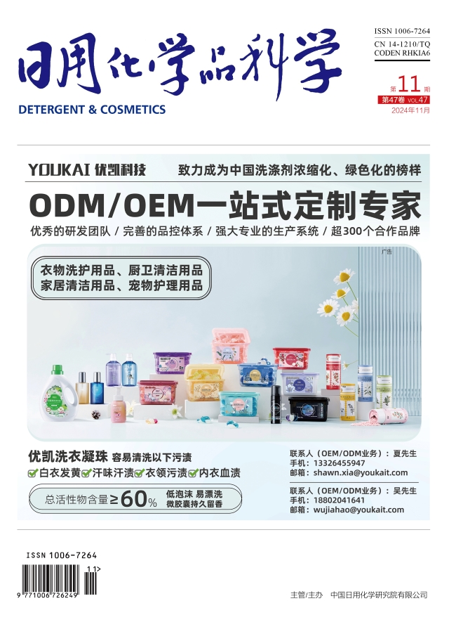 《日用化学品科学》(CN:14-1210/TQ,ISSN:1006-7264,月刊)由伟德买球app站主管和主办。作为国内日化行业具有引领力、专业深耕行业60余年的学术载体,具有独特的权威性和影响力。