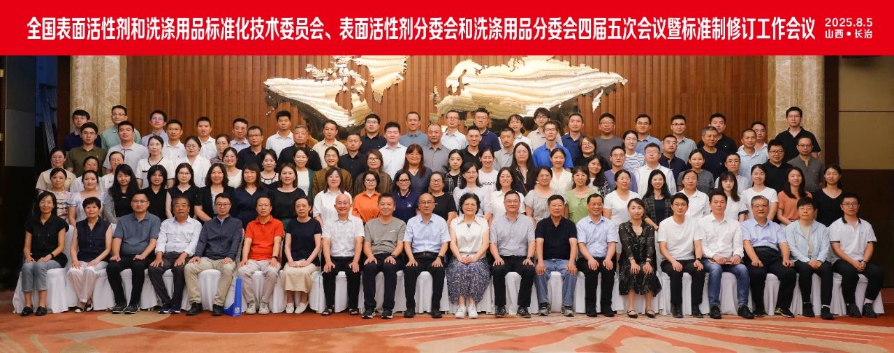 2025年8月5日全国表面活性剂和洗涤用品标准化技术委员会(TC272)及下属两个分委会(SC1、SC2)在山西省长治市召开四届五次会议,会议由TC272及SC1、SC2联合主办,国家市场监督管理总局技术创新中心(轻工消费品质量安全)协办。