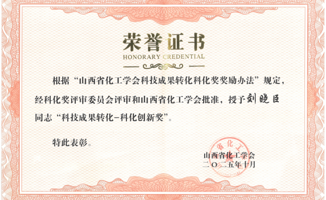 “科技成果转化奖”由山西省化工学会设立,旨在发掘、集聚和鼓励优质科技智力资源,促进创新成果的转化与产业化,引领山西省化工行业转型升级和发展。该奖项每两年评定一次,奖励在组织实施化学化工科技成果转移、转化和服务科技经济融合产业化等方面取得突出业绩的个人。