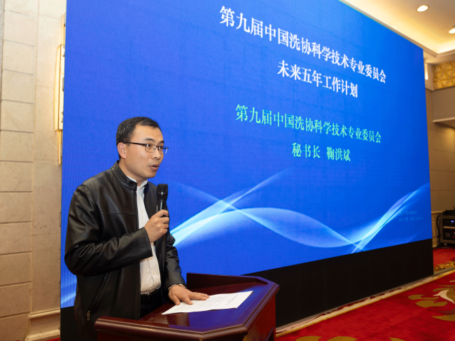 第九届中国洗协科技委秘书长鞠洪斌作《第九届中国洗协科学技术专业委员会工作计划》报告
