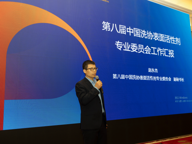 第九届中国洗协表委会秘书长赵永杰作《第九届中国洗协表面活性剂专业委员会工作计划》报告
