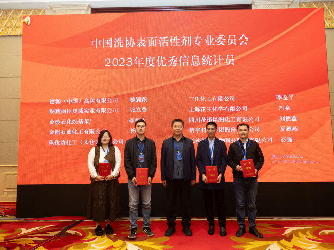 会议期间,表委会对在2023年度信息统计工作中表现优异的统计员进行了表彰和奖励。第九届中国洗协表委会副主任委员王旭宣读《中国洗协表面活性剂专业委员会关于对2023年度优秀统计员进行表彰的决定》。